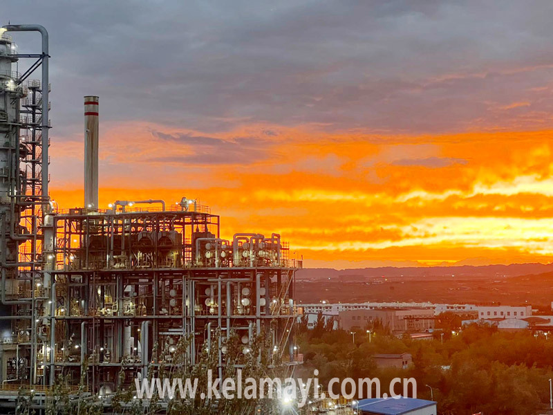 開工后的廠區(qū)裝置與晚霞相映成輝。 本報(bào)通訊員 馬超 攝
