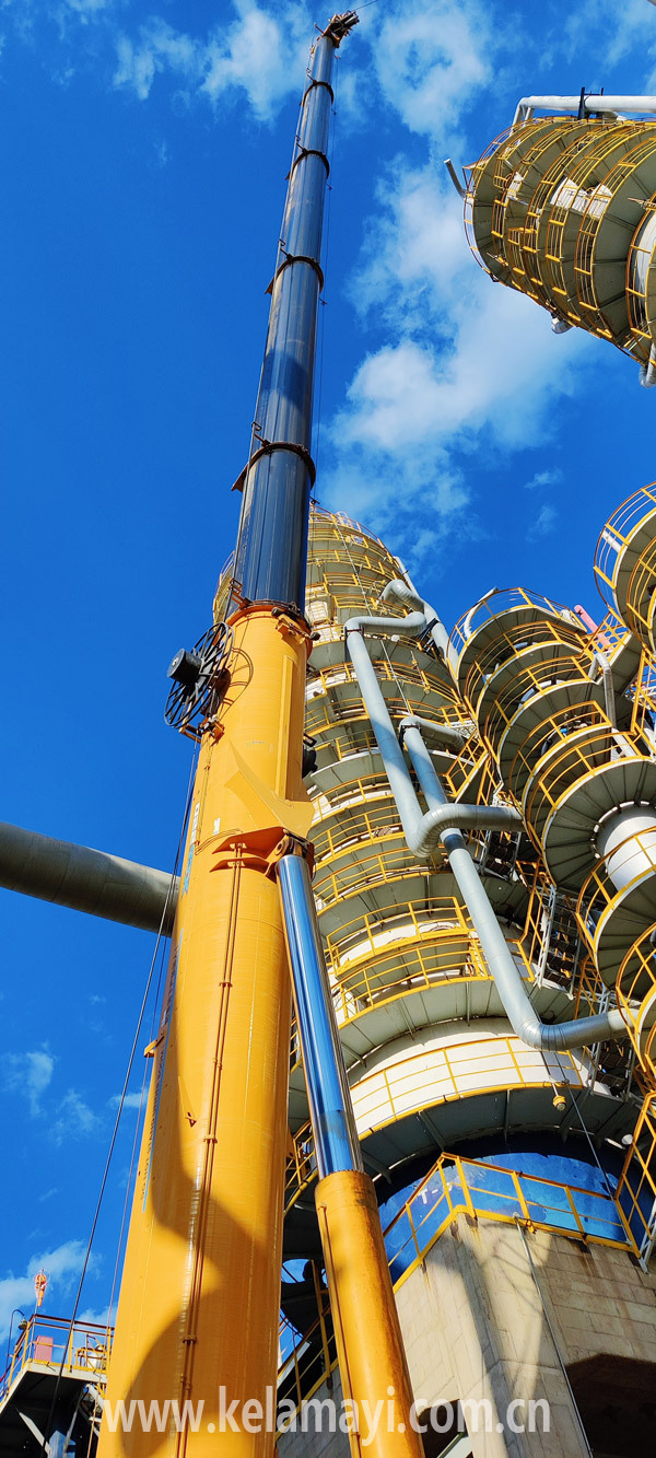 裝置吊裝現(xiàn)場(chǎng)。 本報(bào)通訊員 艾里江 攝