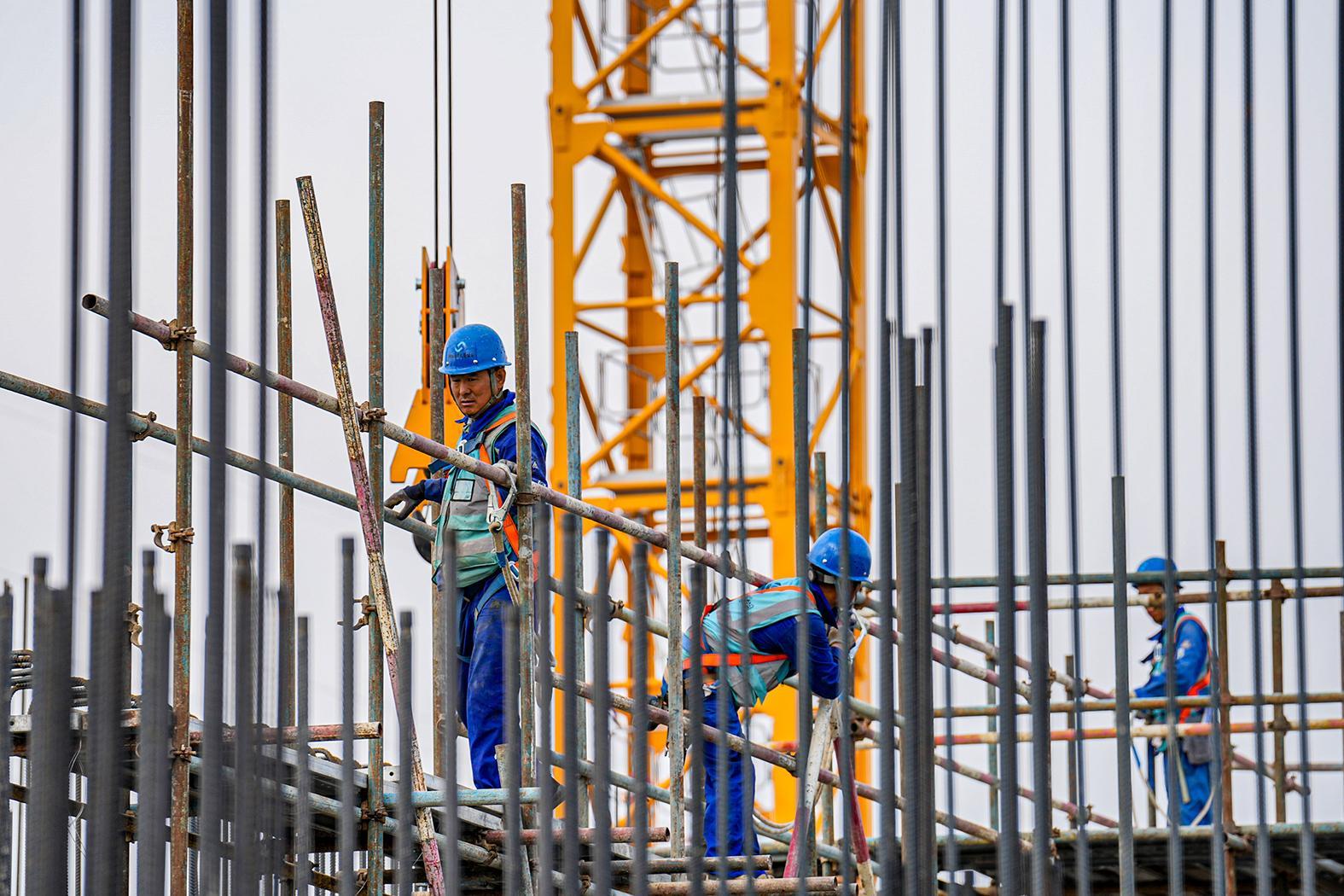 新疆油田煤電聯(lián)營一體化項(xiàng)目建設(shè)現(xiàn)場,工人正緊張作業(yè)。本報(bào)記者徐志遠(yuǎn) 攝