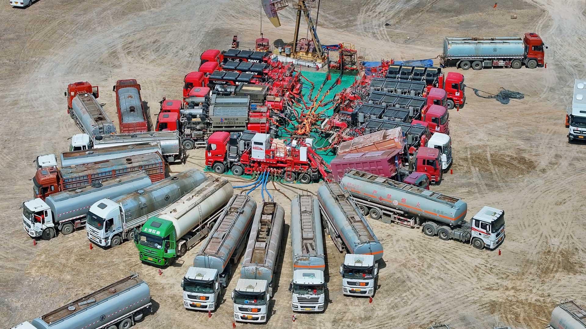 瑪18井區(qū)百口泉組油藏探明地質(zhì)儲(chǔ)量大,但裂縫單一、改造不足、能量衰竭三大難題長(zhǎng)期制約效益動(dòng)用。新疆油田打破以往地質(zhì)、工程、現(xiàn)場(chǎng)施工各自為戰(zhàn)的壁壘,地質(zhì)研究人員從資源掌控、“甜點(diǎn)”識(shí)別和經(jīng)濟(jì)質(zhì)量評(píng)價(jià)維度,綜合測(cè)井反演、儲(chǔ)量豐度、油層厚度及鄰井動(dòng)態(tài),精準(zhǔn)圈定19口直井實(shí)施作業(yè),為項(xiàng)目的經(jīng)濟(jì)可采效益提供了地質(zhì)基礎(chǔ);工程技術(shù)人員借鑒前期“由井到藏”的作業(yè)思路,創(chuàng)新提出“長(zhǎng)縫+復(fù)雜縫”技術(shù)路徑,現(xiàn)場(chǎng)通過大排量、高前置液比例、多級(jí)暫堵等參數(shù)耦合,推動(dòng)采收率提升由單井?dāng)U大至區(qū)塊。施工期間,平均每日可完井3口,完井成功率100%,采用的罐車?yán)悍绞綄?shí)現(xiàn)了10立方米/分鐘大排量作業(yè),能力在國(guó)內(nèi)屬領(lǐng)先水平。
