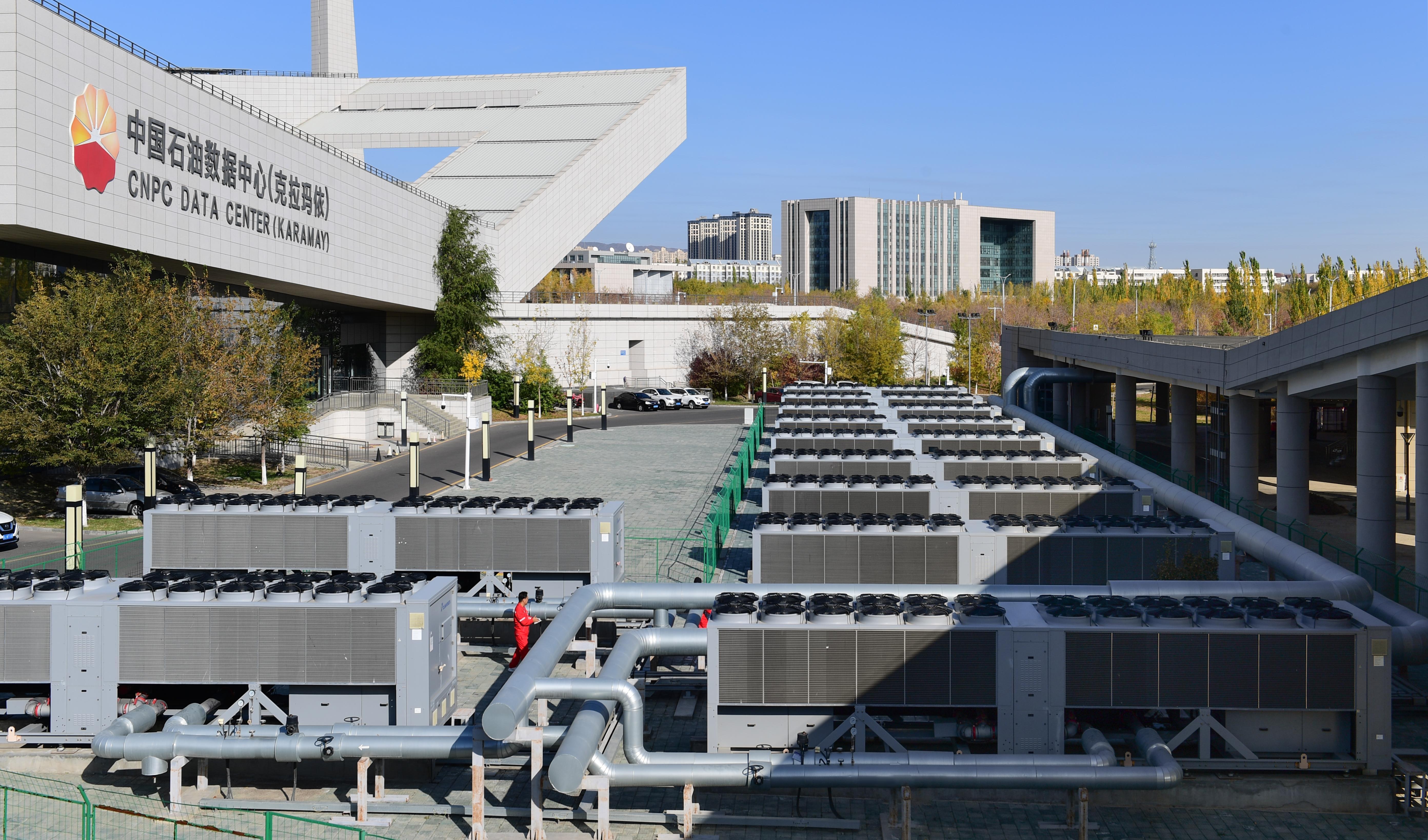 中國(guó)石油數(shù)據(jù)中心(克拉瑪依),員工正在檢查保養(yǎng)風(fēng)冷壓縮機(jī),保障風(fēng)冷自然冷模式正常運(yùn)行。記者 蔣劍 攝