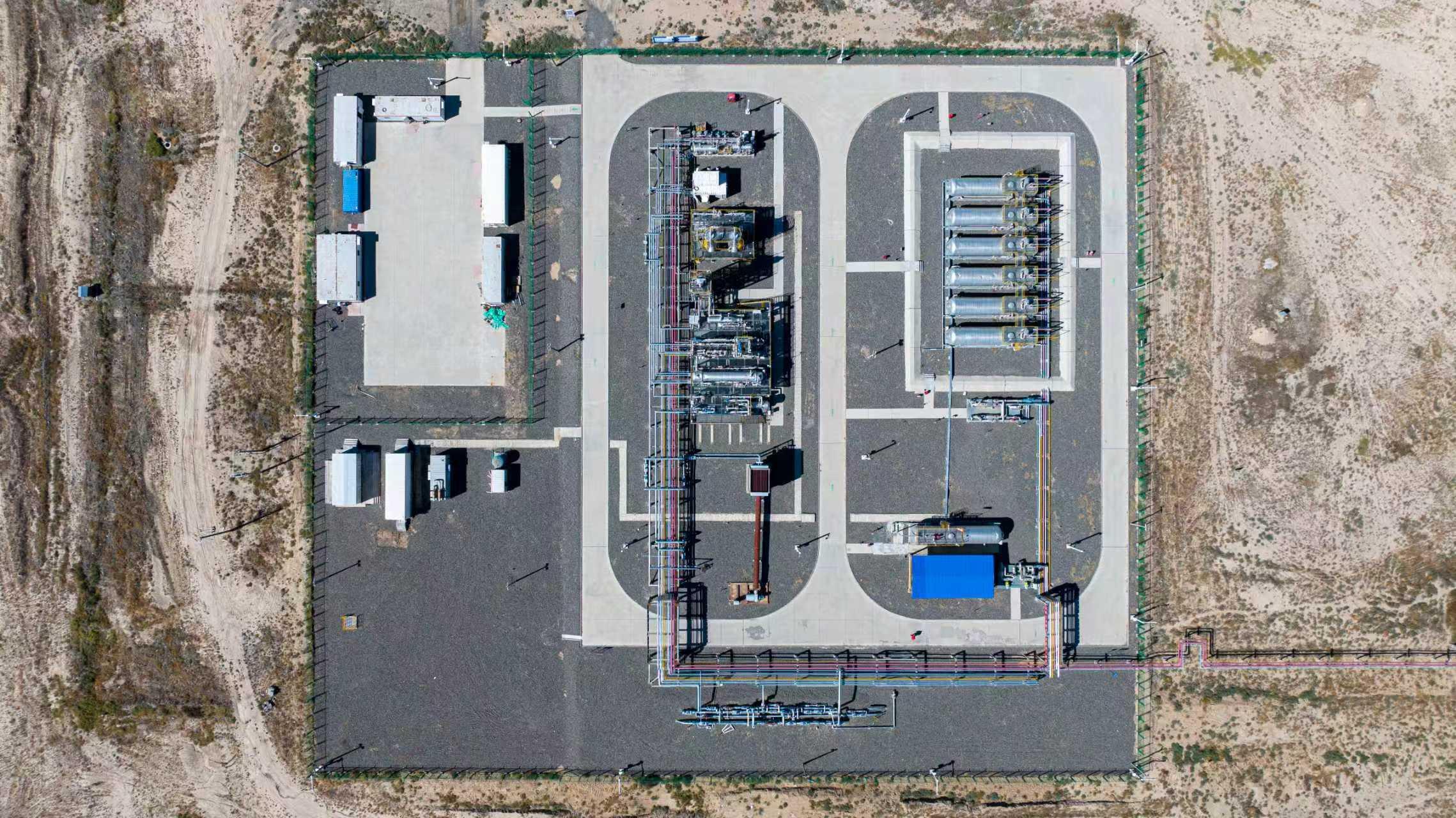 俯瞰呼圖壁采氣作業(yè)區(qū)2號露點(diǎn)控制站。記者 盧杰銘 攝