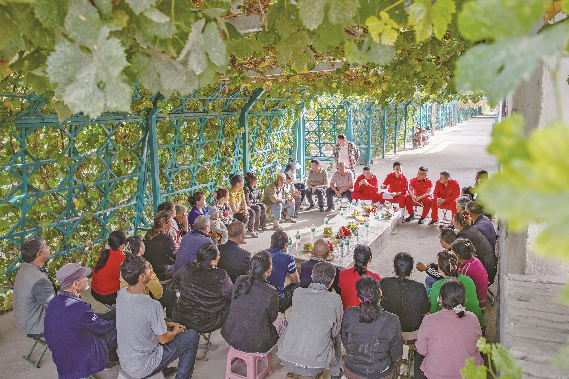 2023年9月,托皮恰村村民圍坐一堂,領(lǐng)取第一筆庭院經(jīng)濟(jì)分紅。