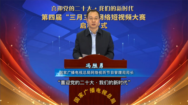 ????國家廣播電視總局網(wǎng)絡視聽節(jié)目管理司司長馮勝勇以視頻方式在儀式上致辭。
