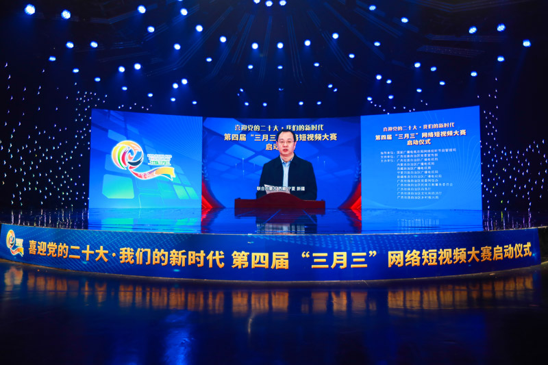 ????廣西壯族自治區(qū)黨委宣傳部部務委員李濱夙、自治區(qū)廣播電視局副局長陸正寧、自治區(qū)民宗委二級巡視員黃日勇、自治區(qū)文旅廳一級巡視員唐正柱、自治區(qū)鄉(xiāng)村振興局副局長楊瑞華、廣西廣播電視臺副臺長馬繼霞、中央廣播電視總臺廣西總站站長何盈,以及廣西壯族自治區(qū)黨委網(wǎng)信辦、商務廳等領(lǐng)導現(xiàn)場出席儀式并共同啟動大賽。內(nèi)蒙古、西藏、寧夏、新疆四個自治區(qū)的廣播電視局領(lǐng)導和代表在線上參加了儀式。