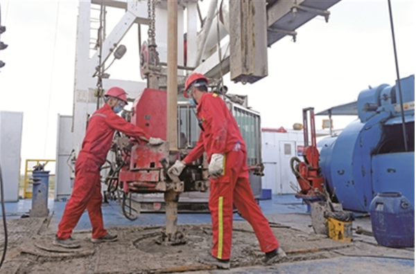 8月18日,在金龍2井區(qū),準(zhǔn)東鉆井公司80006鉆井隊(duì)員正在鉆井平臺(tái)上實(shí)施提鉆施工作業(yè)。8月是油田打井找油的黃金季節(jié),西部鉆探準(zhǔn)東鉆井公司堅(jiān)持一手抓疫情防控、一手抓油田生產(chǎn),所有野外施工隊(duì)伍堅(jiān)持網(wǎng)格化封閉管理,采取“三三三”工作模式,在做好疫情防控工作、確保石油員工身體健康的同時(shí),保障生產(chǎn)安全平穩(wěn)。本報(bào)通訊員 周建玲 攝