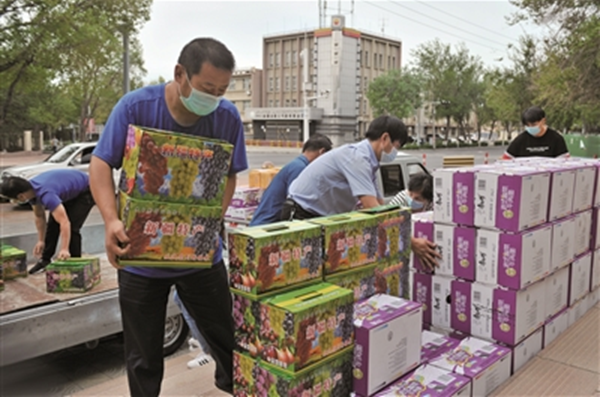 8月23日,市水務公司機關樓前,在崗職工正在搬運慰問品。當天,市總工會和國資委慰問了市水務、熱力、燃氣、綠成、騰飛糧油、西部綠洲等11家后勤保障單位一千余名在疫情防控期間堅守崗位的職工,為他們送去水果、飲料、方便面、火腿腸等慰問品。本報記者 蔣劍 攝