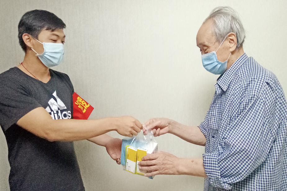 8月26日,克拉瑪依區(qū)前進社區(qū)天成花園疫情防控突擊隊員正在給老人送藥。疫情防控期間,前進社區(qū)成立了一支強有力的疫情防控突擊隊,由黨員干部、熱心居民、大學生等組成。在社區(qū)的統(tǒng)一安排下,他們分工明確、盡職盡責、熱心服務,合理安排不同時間段為居民送菜、送藥、收垃圾、購水電等,有力保障了社區(qū)居民基本生活需求,受到了居民的交口稱贊?!”緢笸ㄓ崋T 周麗芬 攝