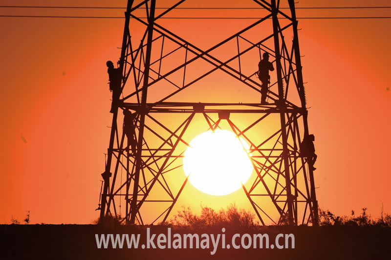 ????11月22日,國網(wǎng)克拉瑪依供電有限公司輸電施工人員正在市區(qū)西戈壁景區(qū)施工段高空作業(yè)。目前,我市“提高城區(qū)供電保障能力110千伏線路調(diào)整—克信昆線”工程的鐵塔組裝、線路、光纜架設(shè)等施工已經(jīng)接近尾聲,預計本月底全部竣工驗收,向中心城區(qū)送電?!翱诵爬ゾ€”即“克信變至昆侖變110千伏線路”,總線路長為11.278公里,全線雙回路地線架設(shè),于今年7月開工。它的建成,將進一步優(yōu)化中心城區(qū)電網(wǎng)網(wǎng)架結(jié)構(gòu),提高供電保障能力。