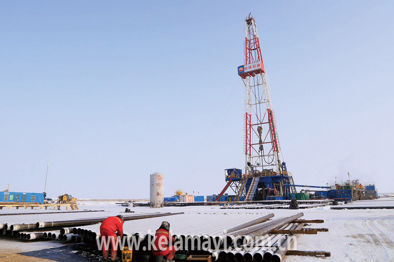 本報(bào)通訊員 侯紅麗 攝 11月18日,西部鉆探克拉瑪依鉆井公司鉆井隊(duì)員工正在檢查、清洗技術(shù)套管。