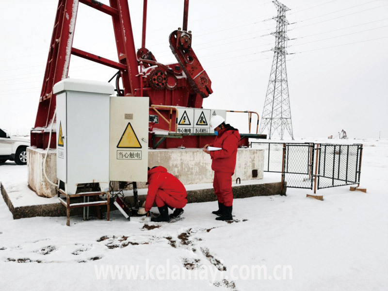 本報(bào)通訊員 孫彥峰 攝 11月18日,實(shí)驗(yàn)檢測研究院工作人員正在對抽油機(jī)進(jìn)行年度檢測。