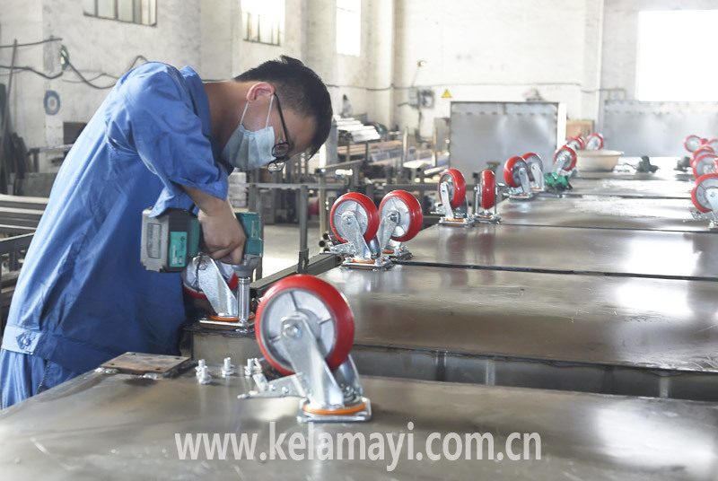 員工組裝垃圾桶。