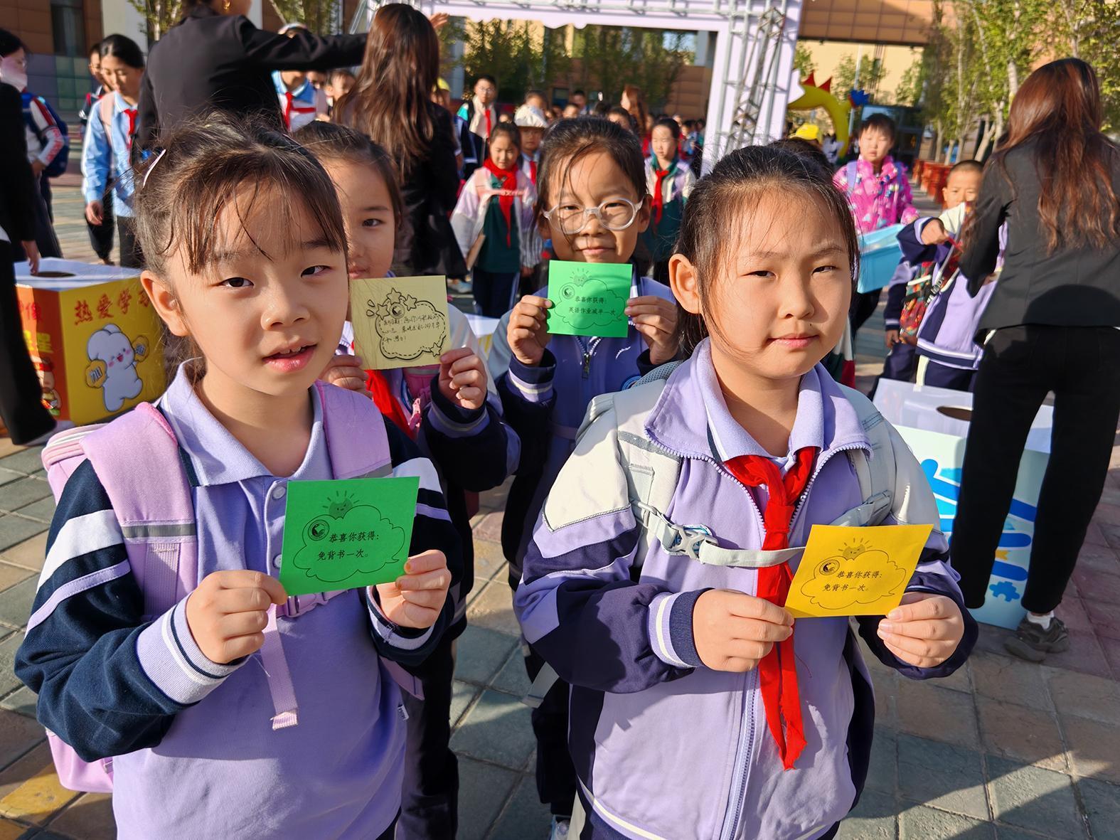市康城小學(xué)學(xué)生展示自己收到的新學(xué)期寄語(yǔ)。陳莉 攝