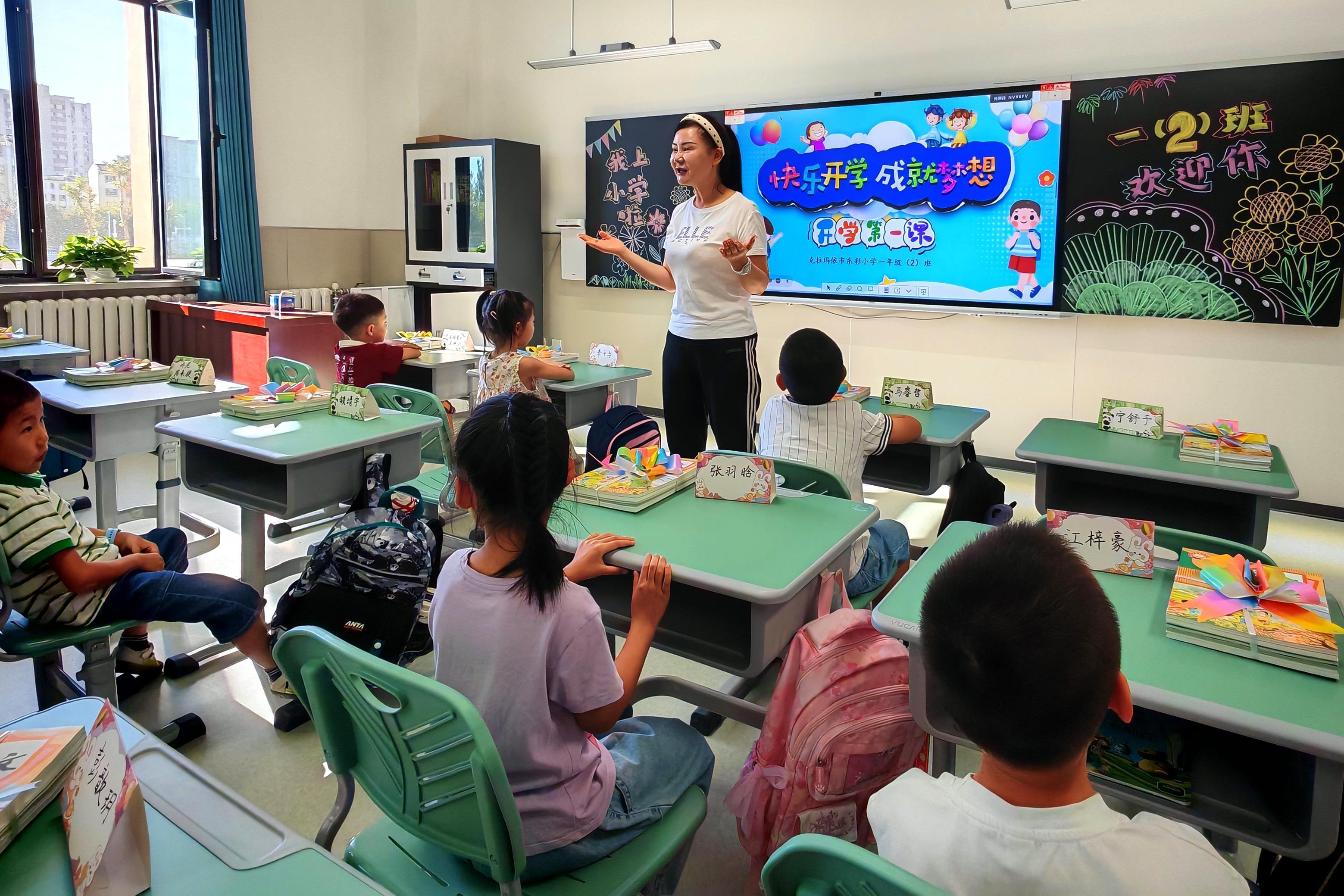 市第九小學(xué)教室被裝飾得溫馨可愛(ài) ,讓學(xué)生感受到了新學(xué)期的儀式感 。 克拉瑪依融媒記者 王雨萱 攝