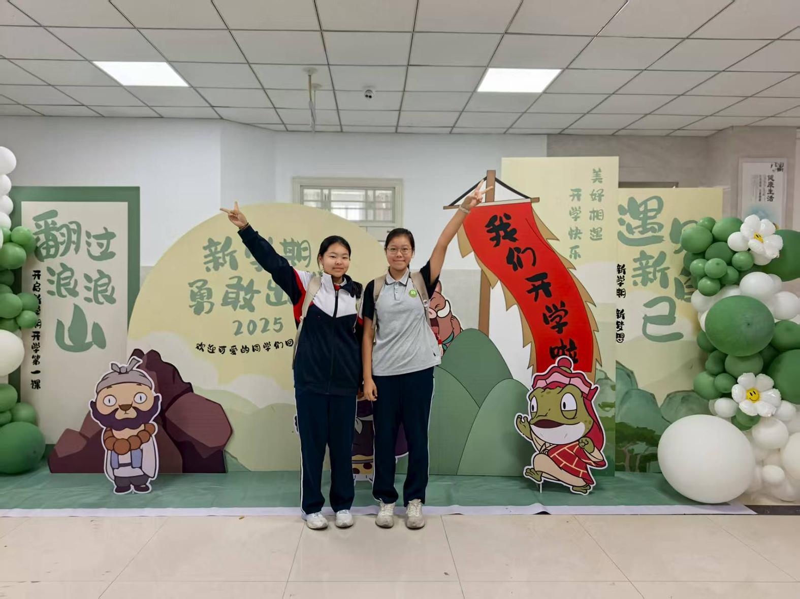 市第七中學(xué)學(xué)生在新學(xué)期打卡點(diǎn)前合影留念。閆瑤 攝