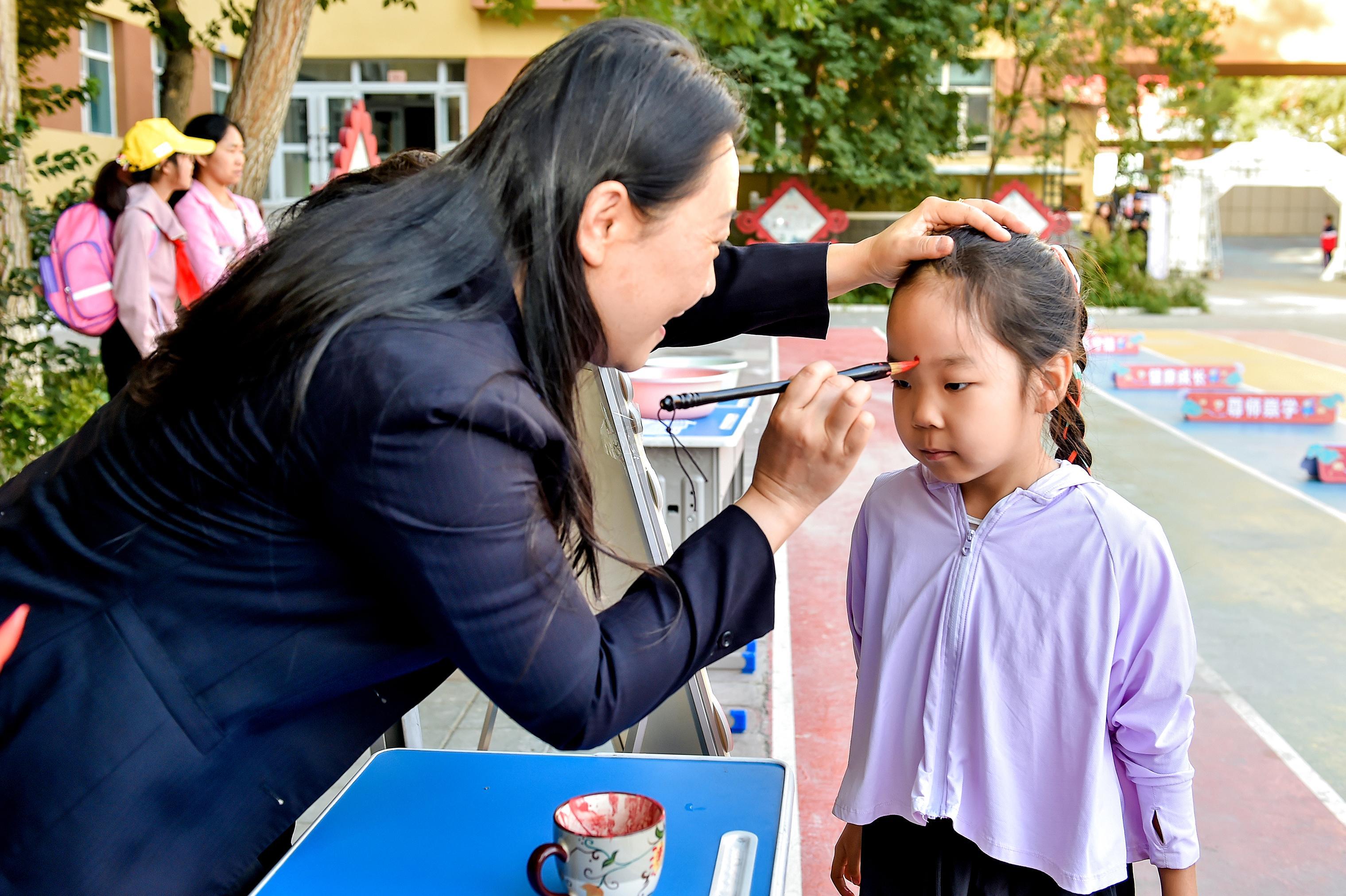 市第五小學(xué)為一年級(jí)新生舉行了“朱砂啟智”儀式。克拉瑪依融媒記者 努爾夏提·尼加提 攝