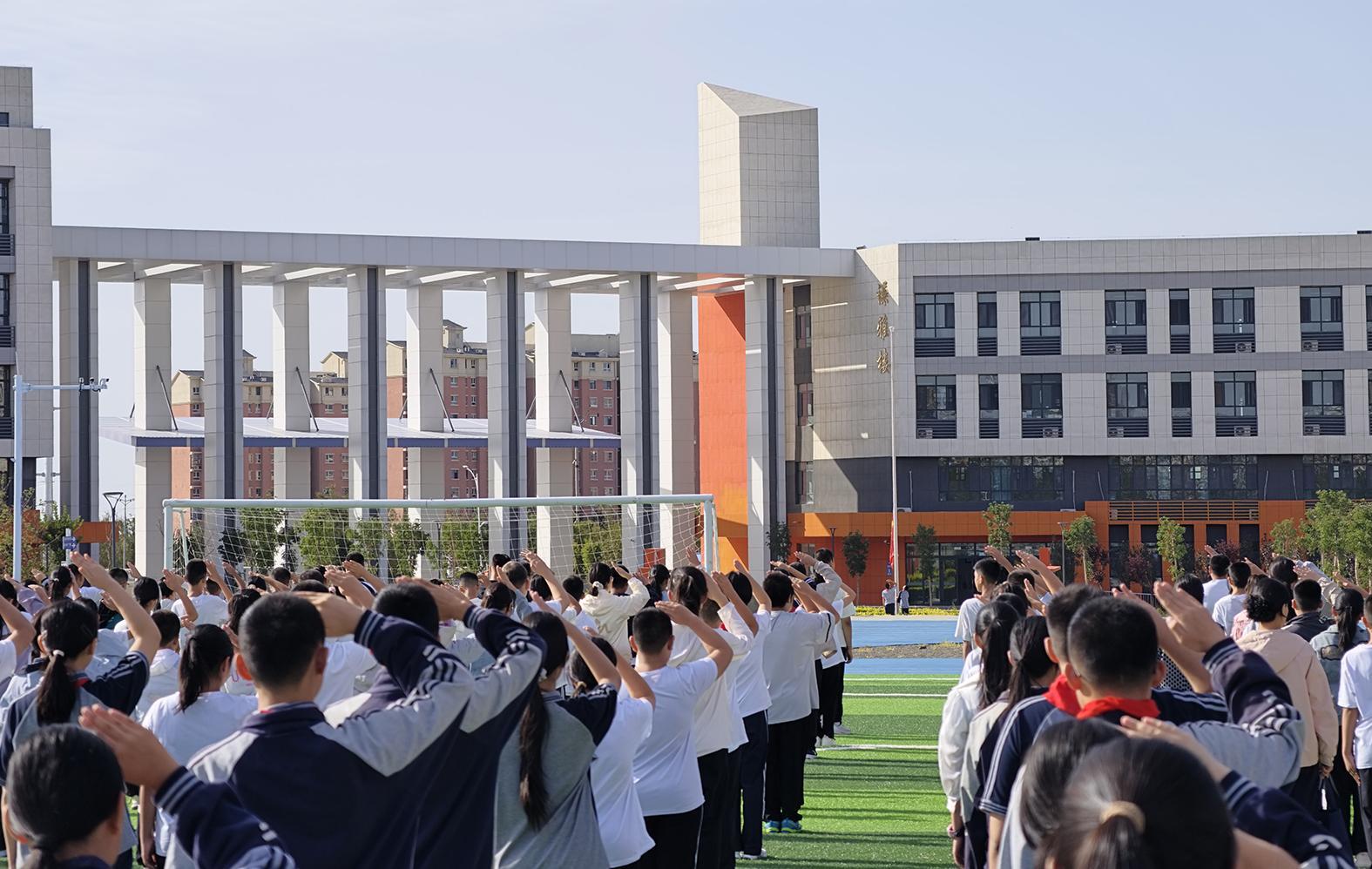 市綠雅中學(xué)舉辦新學(xué)期首場(chǎng)升旗儀式。張聞 攝