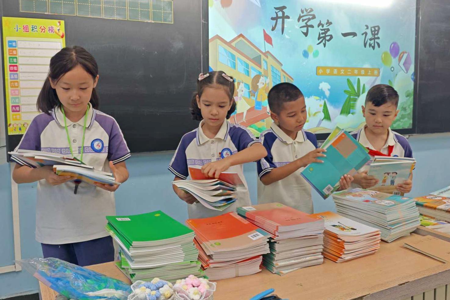 市第三小學(xué)學(xué)生領(lǐng)取新書(shū)本,開(kāi)啟新學(xué)期學(xué)習(xí)生活。 克拉瑪依融媒實(shí)習(xí)記者 黃俊哲 攝