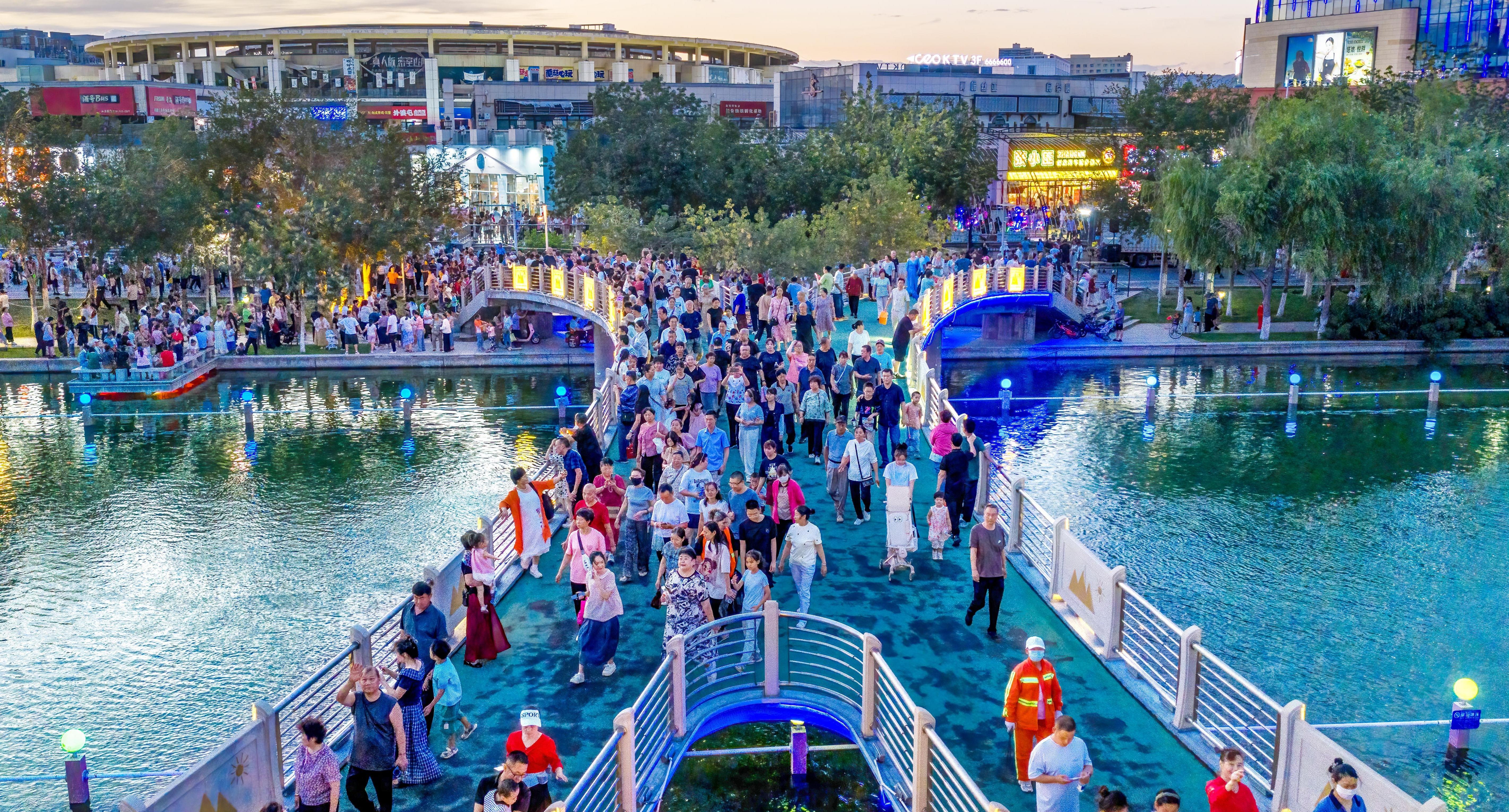 8月9日晚,克拉瑪依河畔燈火璀璨,通往匯嘉濱河廣場的連心橋上行人如織。近年來,克拉瑪依區(qū)立足區(qū)位優(yōu)勢及特點,優(yōu)化夜間消費環(huán)境、完善服務(wù)設(shè)施、發(fā)展特色產(chǎn)業(yè),夜間消費潛力不斷釋放,消費人數(shù)和質(zhì)量不斷提升。