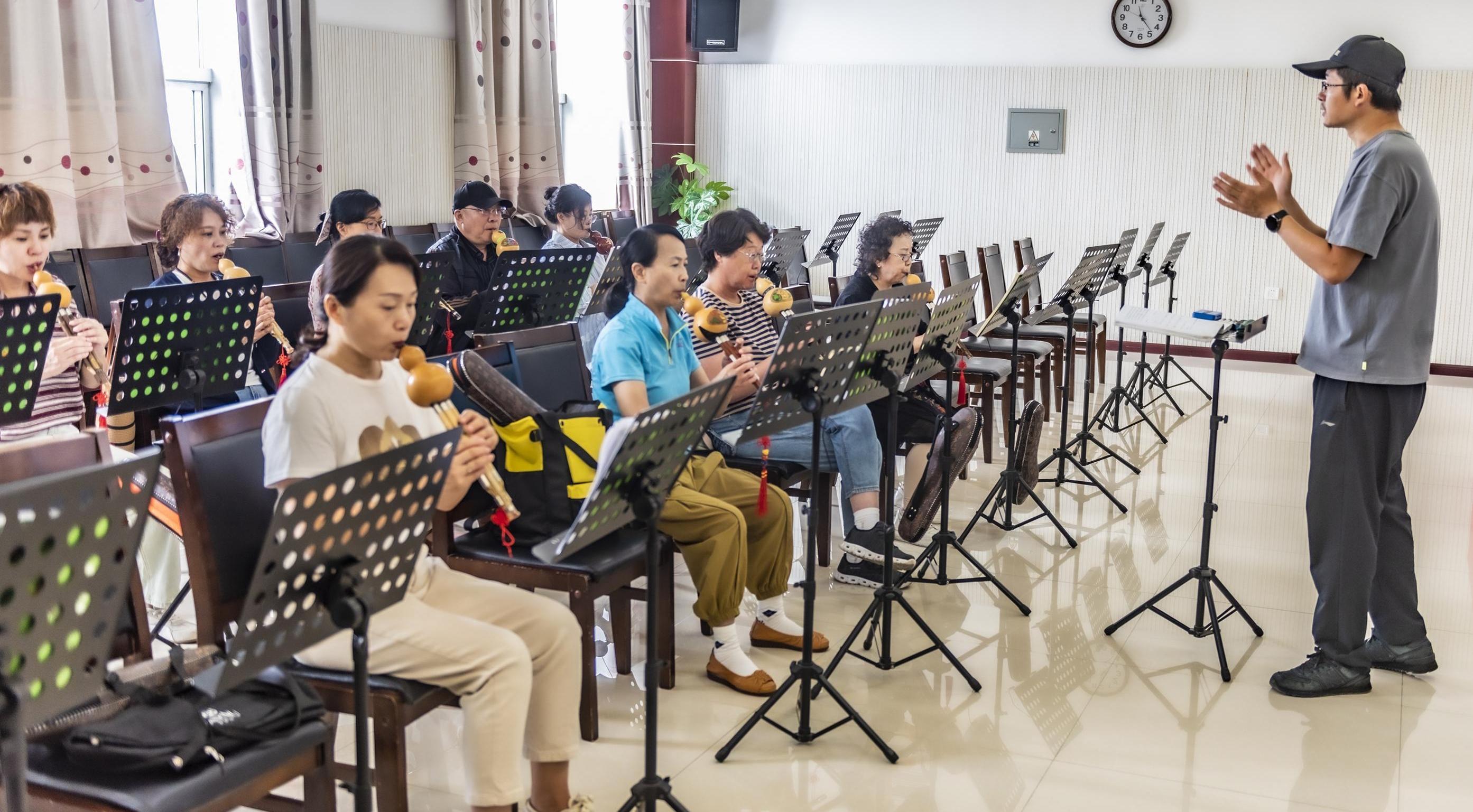 9月1日,克拉瑪依區(qū)老年大學,葫蘆絲班的學員正在學習葫蘆絲。