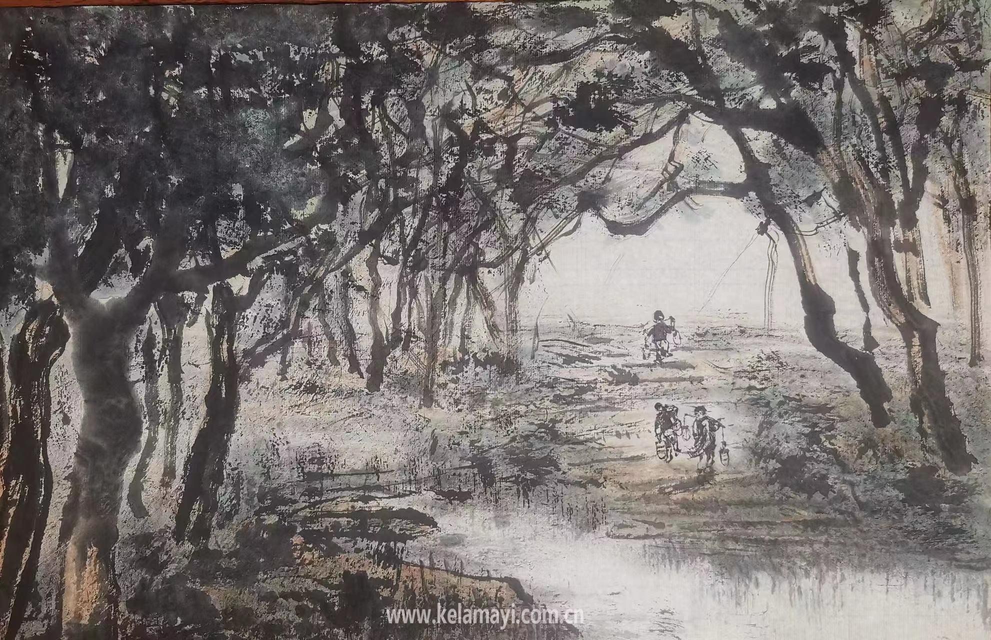 周東海,男,甘肅武山人。師從畫家李喜生,現(xiàn)為克拉瑪依區(qū)政協(xié)畫院院士,熱衷于一筆到底皴畫法,勾、皴、擦、點、染渾然一體。工作之余,他喜愛將生活中的美景記錄于心,用畫筆描繪祖國的壯美山河。