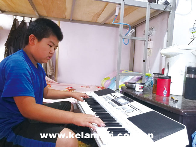 ????7月24日,午睡起床后,李思宇輕輕巧巧地從上鋪爬到下鋪,穿好鞋子后,他便從列車房的角落抱起了自己的電子琴,橫架在兩張下鋪上。????兩張床鋪間的距離,正好能架起他的電子琴。他搬來一只小凳,坐在了電子琴前。雖然沒有正規(guī)的琴架、琴凳,但是李思宇覺得,凳子高低正合適,坐姿也挺舒服。