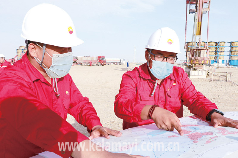 ????10月1日,受西伯利亞寒流影響,克拉瑪依最低氣溫逼近零攝氏度。戈壁灘的風刮個不停,打在臉上生疼。周丹顧不上這些,先是召集施工組、供水單位、壓裂技術(shù)服務方、微地震檢測服務方共同召開協(xié)調(diào)會,確保按時順利啟動壓裂。然后反復確定所有安全保證環(huán)節(jié)是否到位。即使這套工作流程他已十分熟悉,在現(xiàn)場還是一遍遍反復確認:壓裂車供水是否到位?管匯連接是否到位?循環(huán)試壓是否正常?