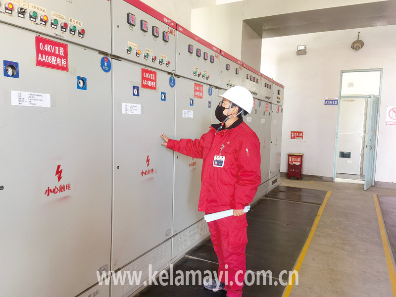 宋晶晶正在檢查流化床鍋爐的配電柜設施。