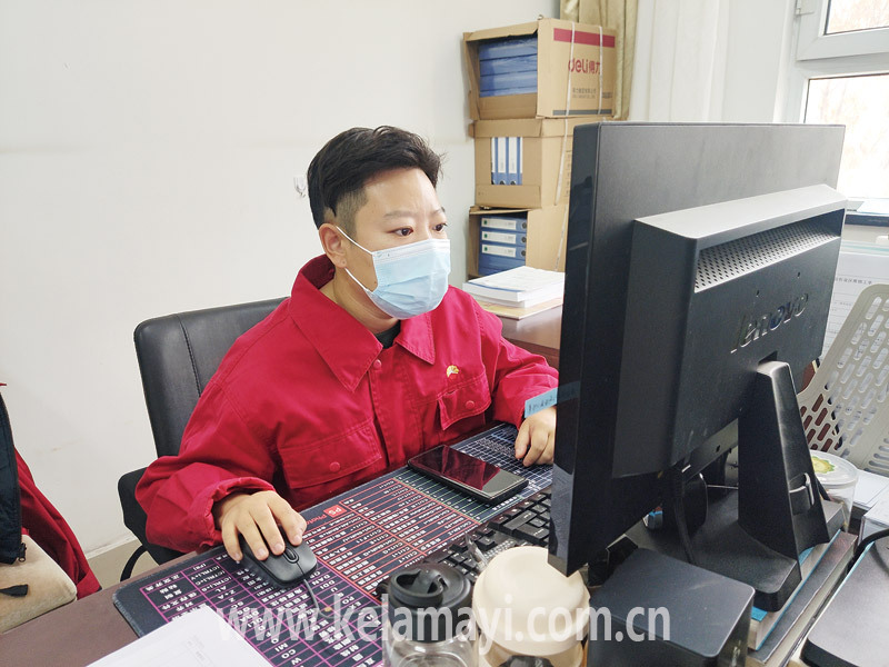 風城油田作業(yè)區(qū)一號供汽聯(lián)合站技術員宋晶晶正在電腦前核對鍋爐DMS系統(tǒng)的數(shù)據(jù),確保冬季鍋爐正常運行。本報通訊員 張紫薇 攝