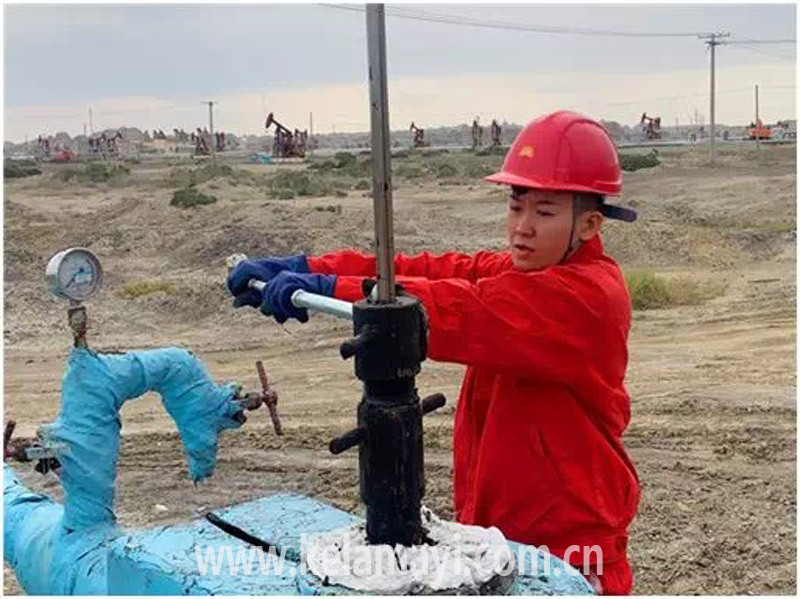 于詩瑞在油田現(xiàn)場操作,拉緊盤根盒。 圖片由本人提供