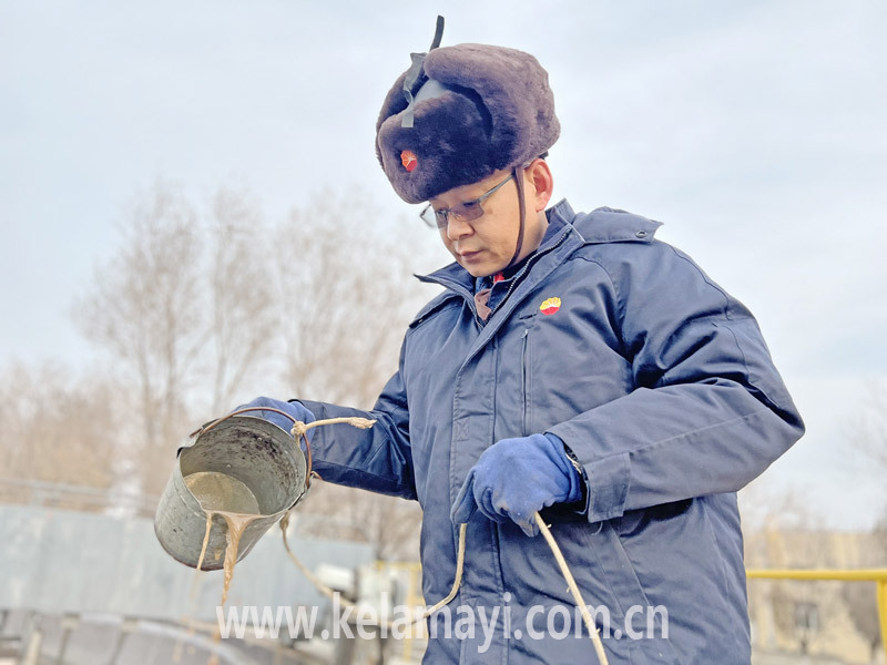 ????上個月20日下午,天陰著,透出干巴巴的冷。一個穿著棉工服的人正在二沉池刮泥機上仔細巡檢著。他是克石化公司工業(yè)水聯(lián)合車間污水處理裝置工藝三班的班長——吳春惠。