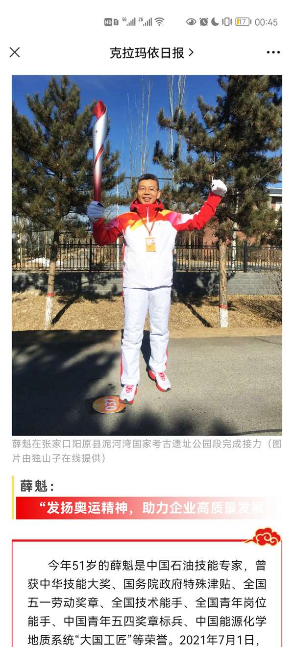 ????“出圈”理由:北京冬奧會火炬手,曾獲“全國五一勞動獎?wù)隆薄爸腥A技能大獎”“全國技術(shù)能手”、中國能源化學(xué)地質(zhì)系統(tǒng)“大國工匠”等榮譽