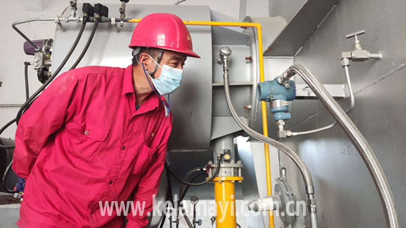 曹永章正在查看鍋爐運(yùn)行狀況。