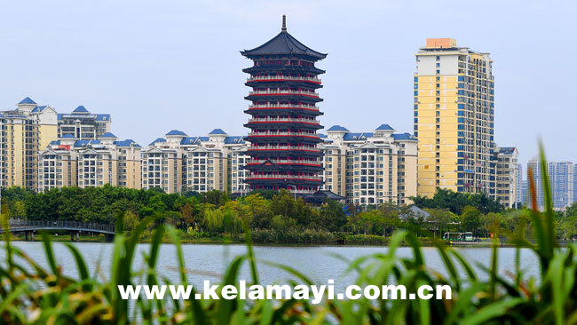 市區(qū)白石湖公園,塔樓給城市增添了亮色。
