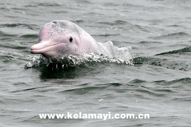 欽州三娘灣海域,中華白海豚在海里暢游跳躍。