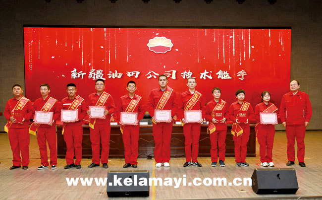 油田公司領(lǐng)導(dǎo)為獲得“技術(shù)能手”稱號的選手頒發(fā)獲獎證書。