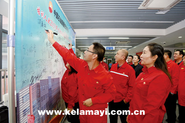 ????11月11日,中國石油新疆技師學(xué)院第十期黨支部書記培訓(xùn)班學(xué)員楊勇和萬丙乾,在該學(xué)院設(shè)立寫有“培訓(xùn)人次突破60000人次”的簽名墻上,鄭重地寫下了自己的名字,成為了這一重要時刻的見證者。