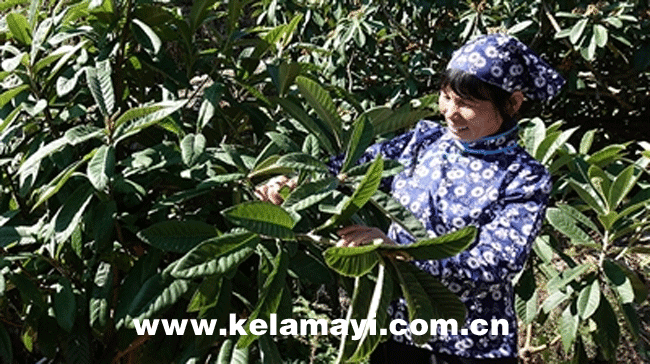 農(nóng)民在枇杷園里忙碌。這里四季如春,適宜水果生長(zhǎng)。