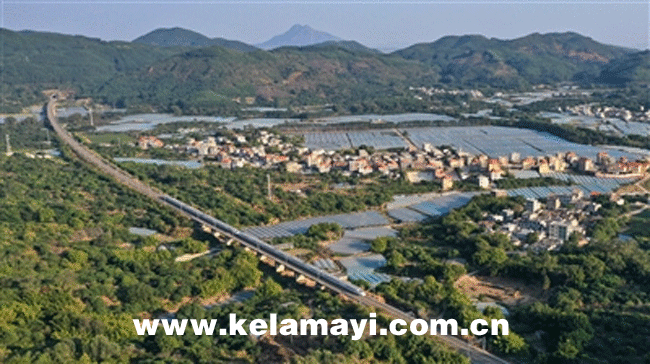 一列高速列車(chē)從詔安縣國(guó)家3A級(jí)景區(qū)九侯山下駛過(guò)。田園風(fēng)光盡收眼底。