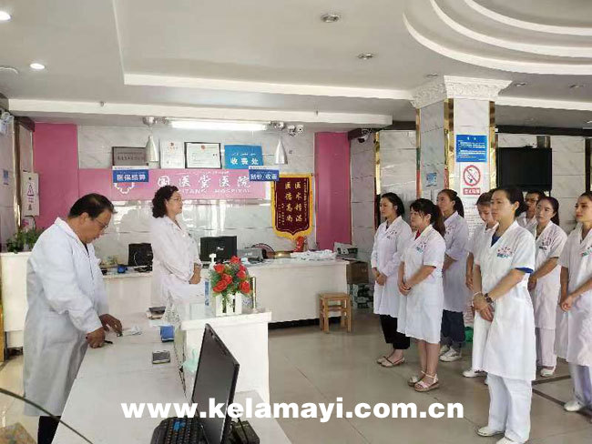 (本版圖片由國(guó)醫(yī)堂醫(yī)院提供) 國(guó)醫(yī)堂克拉瑪依醫(yī)院晨會(huì)。