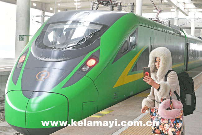 ????12月10日中午12時(shí)20分,滿載著773名乘客的“復(fù)興號(hào)”C8764次列車從克拉瑪依火車站駛出,快速奔向首府烏魯木齊。這標(biāo)志著時(shí)速160公里的“復(fù)興號(hào)”動(dòng)車組開(kāi)進(jìn)克拉瑪依,也標(biāo)志著新中國(guó)石油長(zhǎng)子所在的克拉瑪依市,又一次走上了發(fā)展的“快車道”。