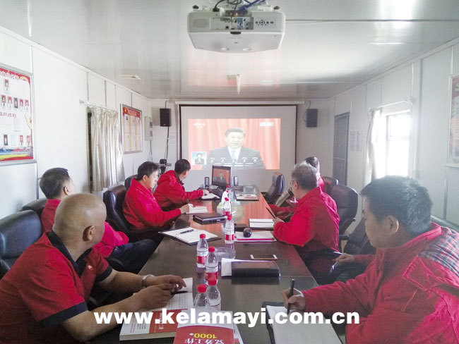 項(xiàng)目部黨員干部在駐地收看紀(jì)念馬克思誕辰200周年大會直播實(shí)況。