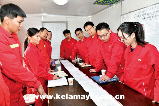 項目組成員正在探討超長水平井的數(shù)據(jù)圖表,以便制定科學(xué)的鉆井方案。