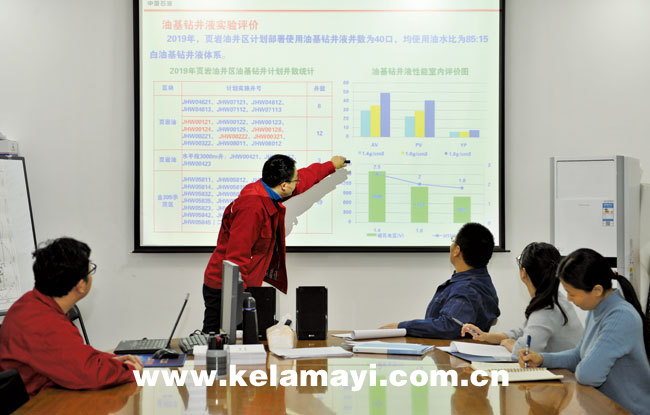 項目組成員正在分析實鉆過程中油基鉆井液的性能參數(shù)。
