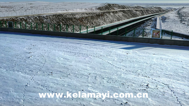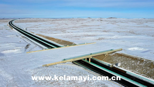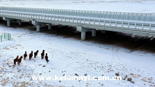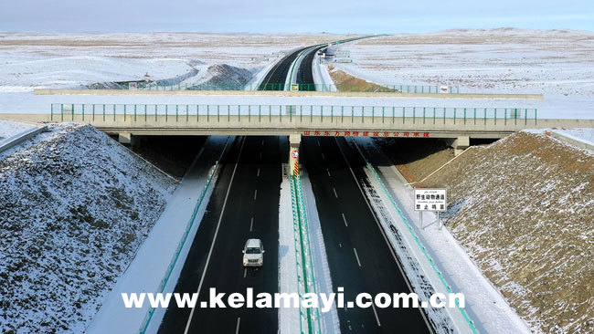 ????12月27日,新疆卡拉麥里山有蹄類野生動物自然保護區(qū)(簡稱卡山保護區(qū))天橋上多了幾行新鮮蹄印。今冬,這座天橋開始發(fā)揮作用。????這是國內公路建設中首座專為動物遷徙架設的天橋,地處新國道216線新疆富蘊至五彩灣一級公路k335到k350段。