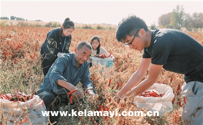 駐查干草村工作隊隊員幫助村民采摘辣椒。