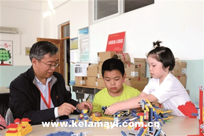 駐西月潭社區(qū)工作隊隊員李晨教孩子們玩樂高玩具。