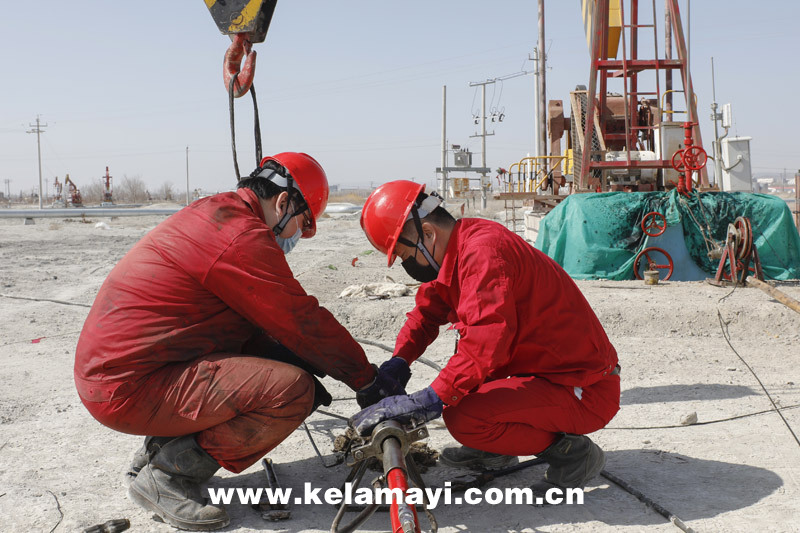 測(cè)試一隊(duì)項(xiàng)目部員工在采油二廠第七作業(yè)區(qū)施工。