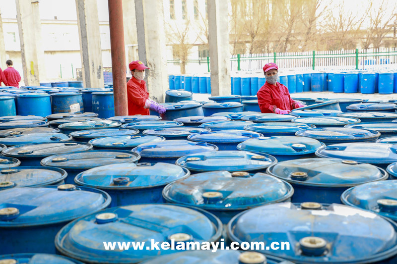 助劑事業(yè)部員工做好破乳劑桶裝準(zhǔn)備工作。 本報(bào)通訊員 邵振國 攝