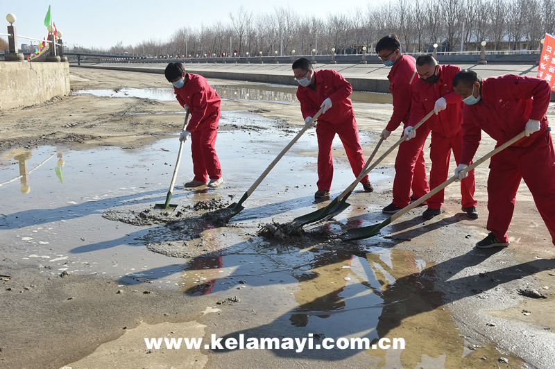 ????截至3月28日,共完成風(fēng)克干渠清理渠道積冰5950立方米,克拉瑪依河排水6800立方米,清淤268車約5000立方米,清理垃圾26皮卡車。